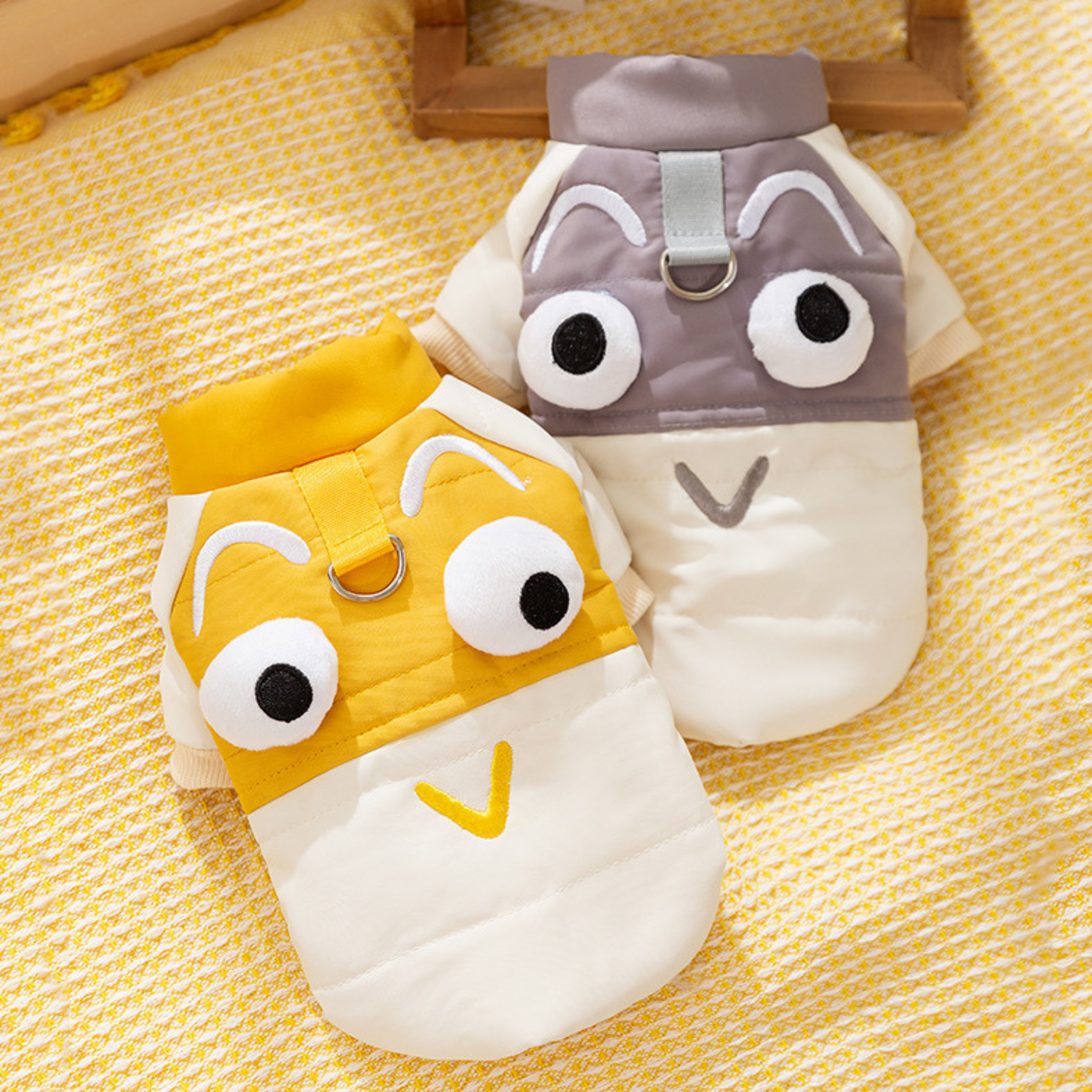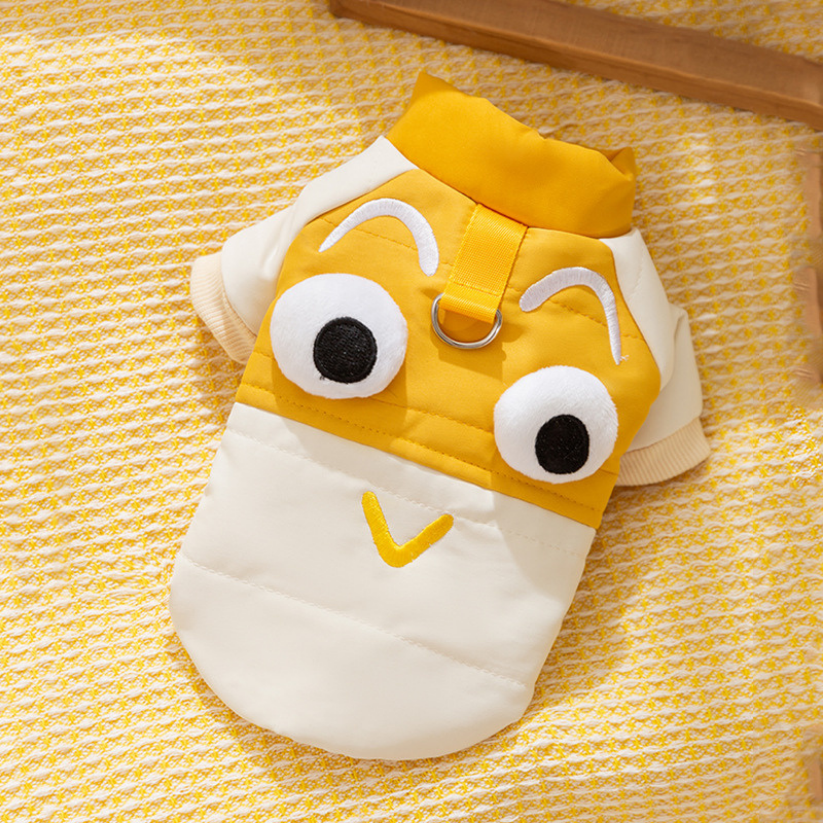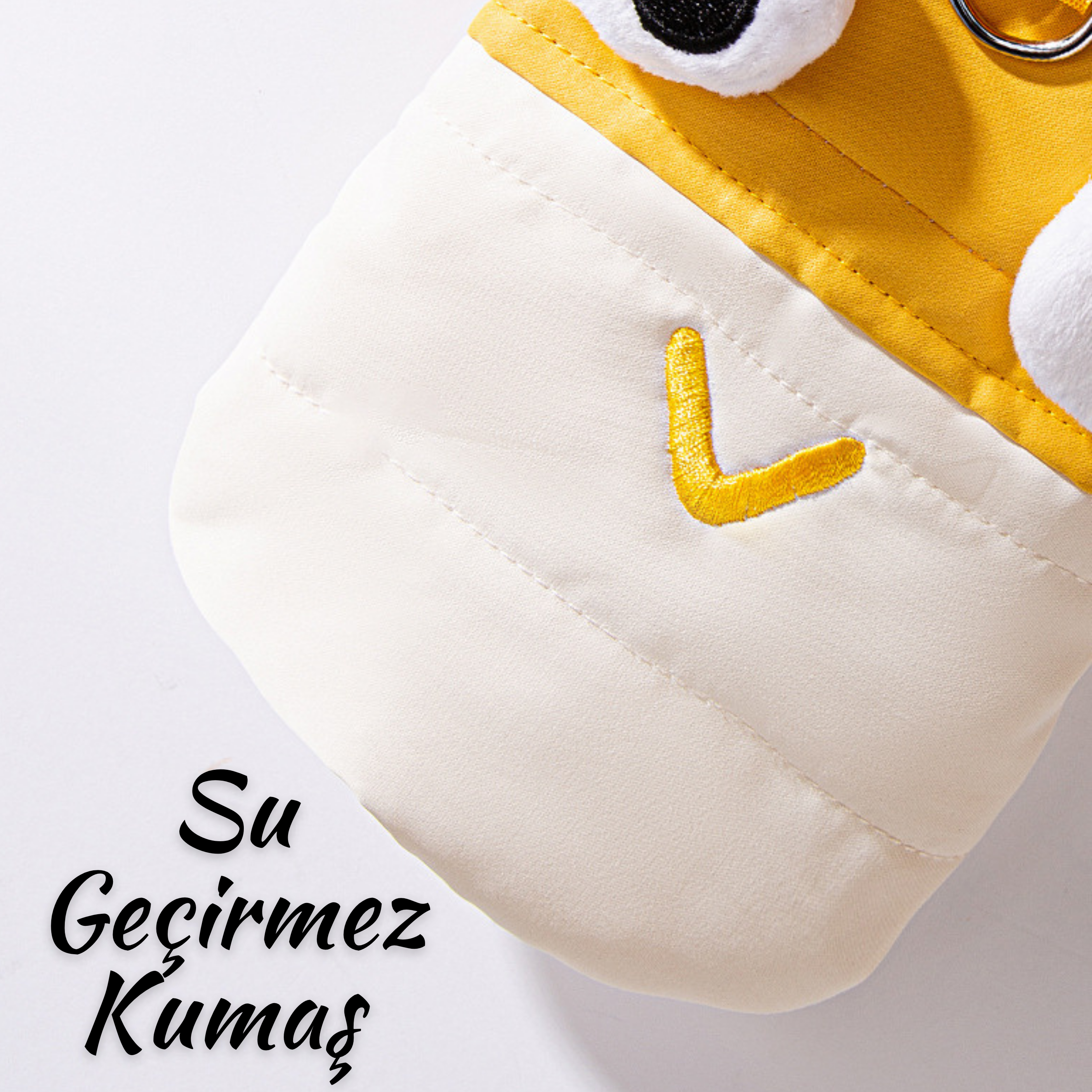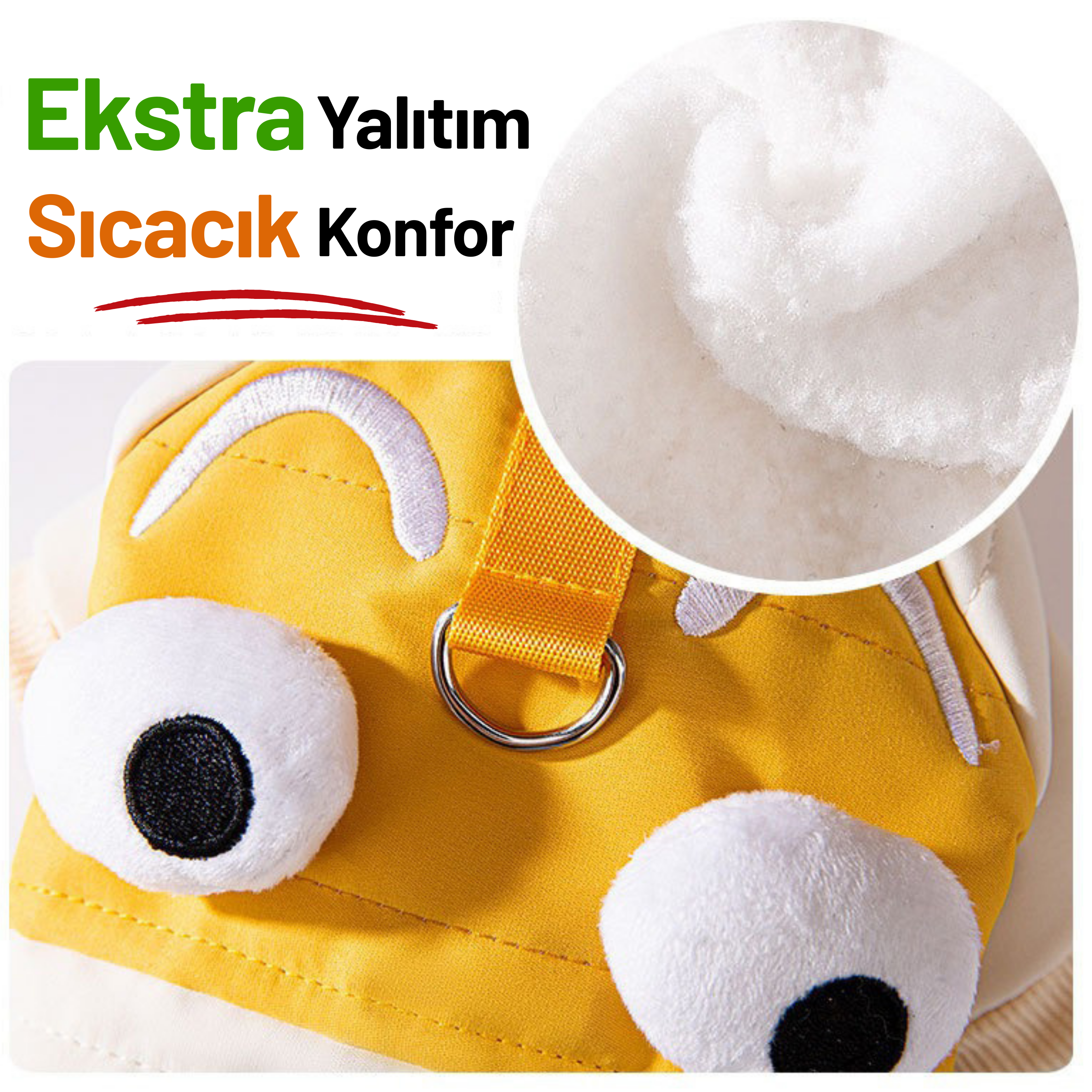 Sevimli göz detayları köpeğinize şirin bir görünüm kazandırırken, çıtçıtlı tasarımı ile kolaylıkla giydirebilirsiniz.