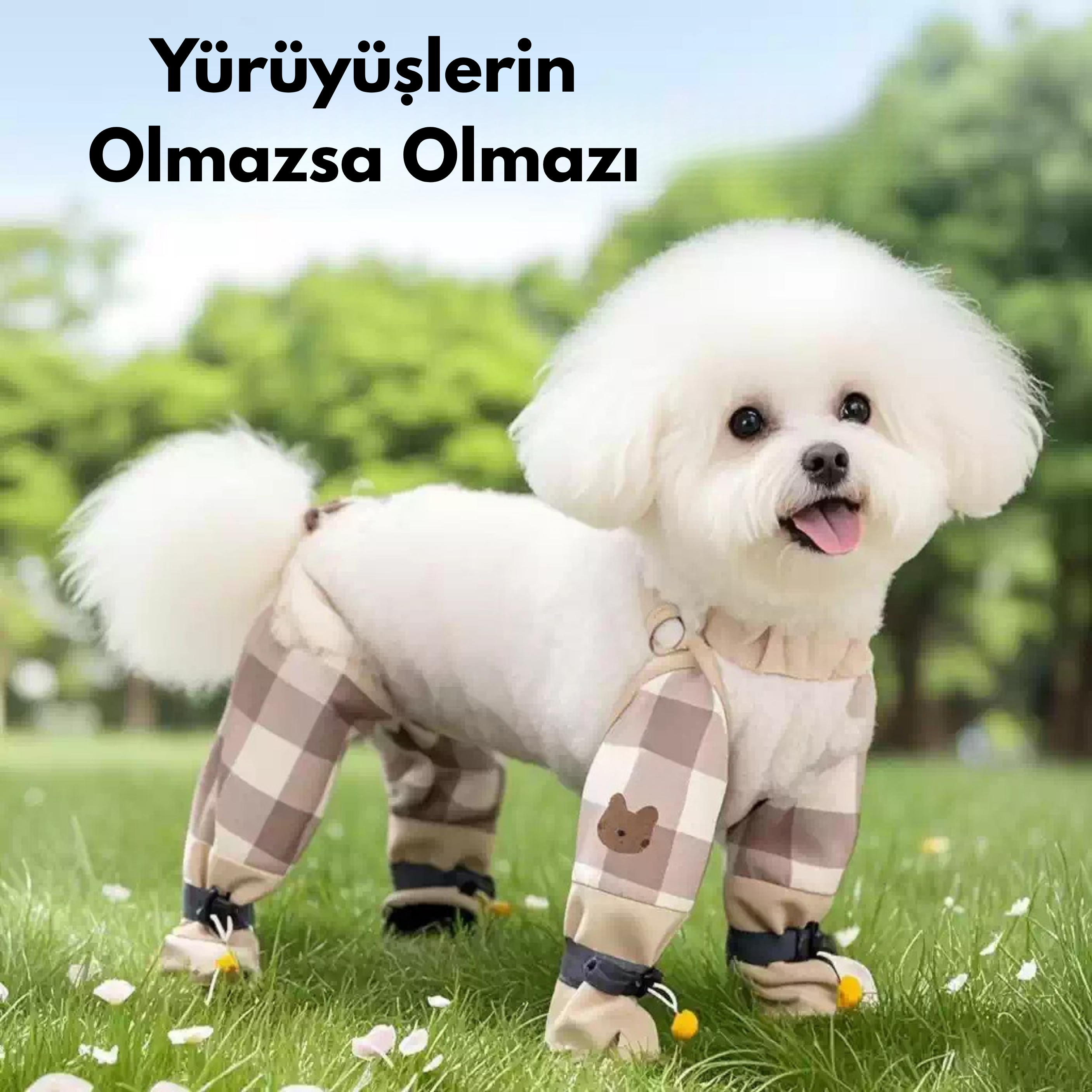 Yağmur, çamur ve ıslak çim artık sorun değil! Tulumun özel kumaşı sayesinde patiler her yürüyüşte kuru ve tertemiz kalır.